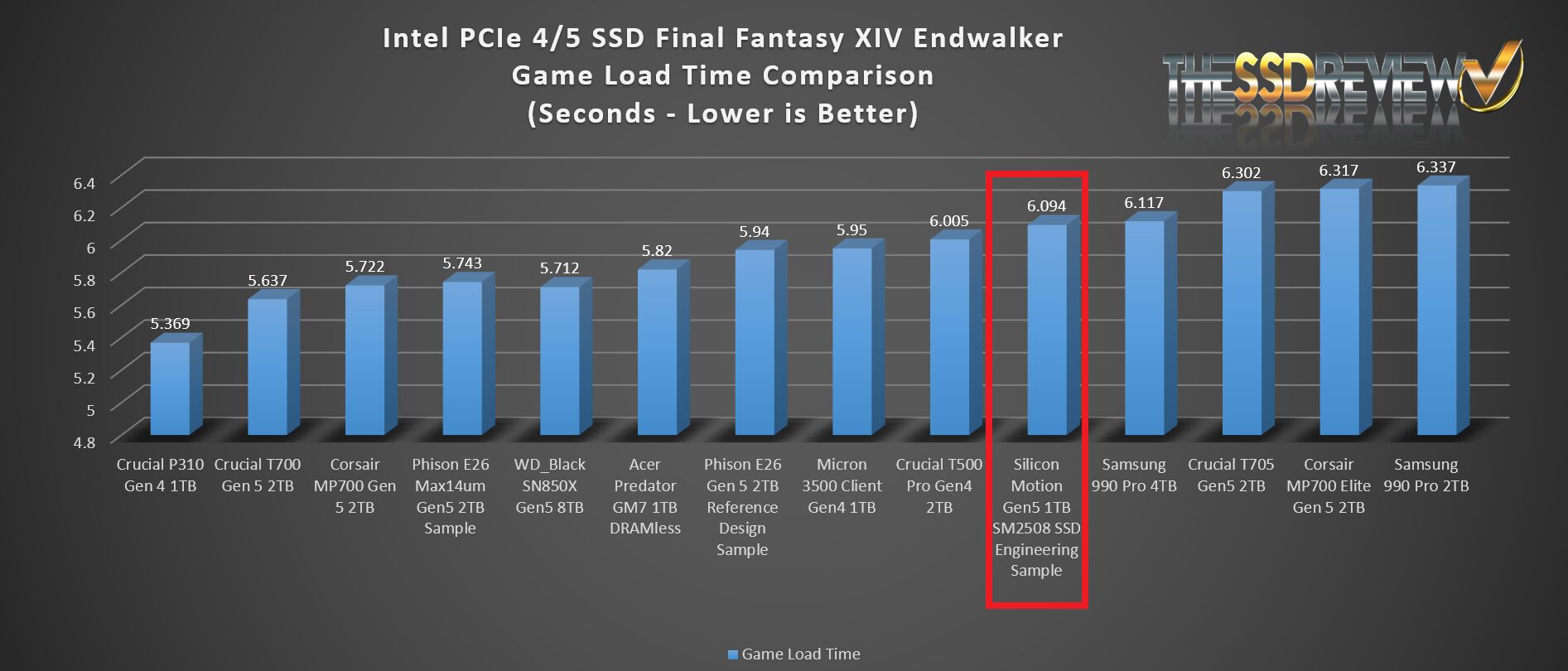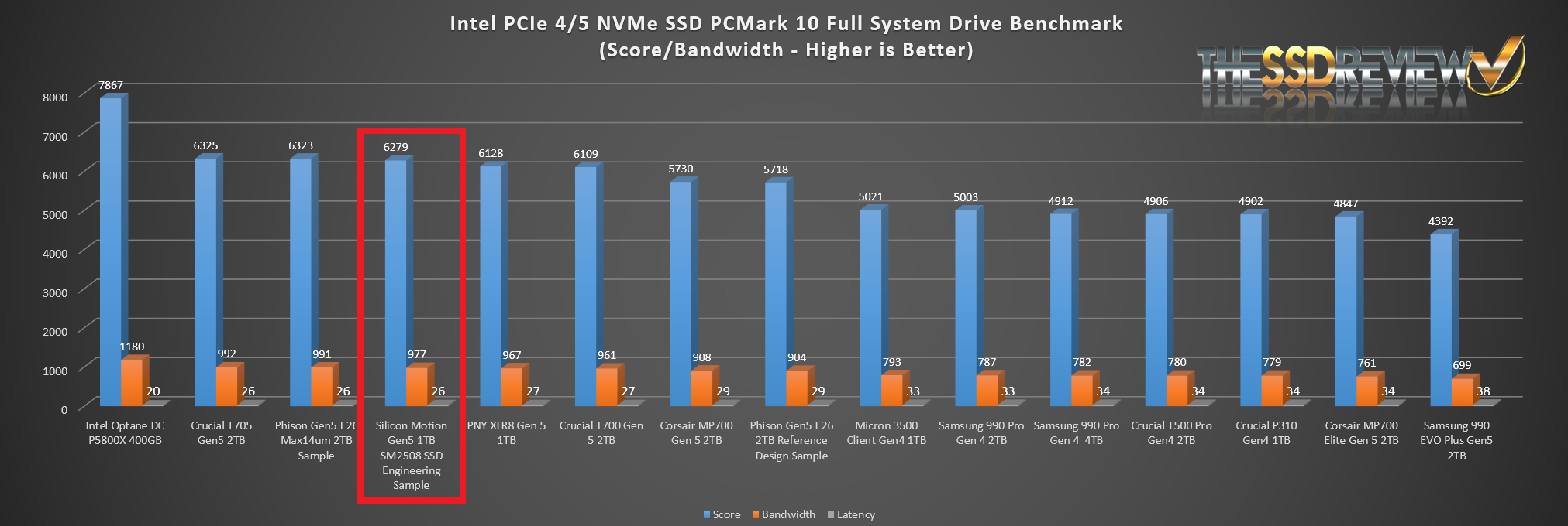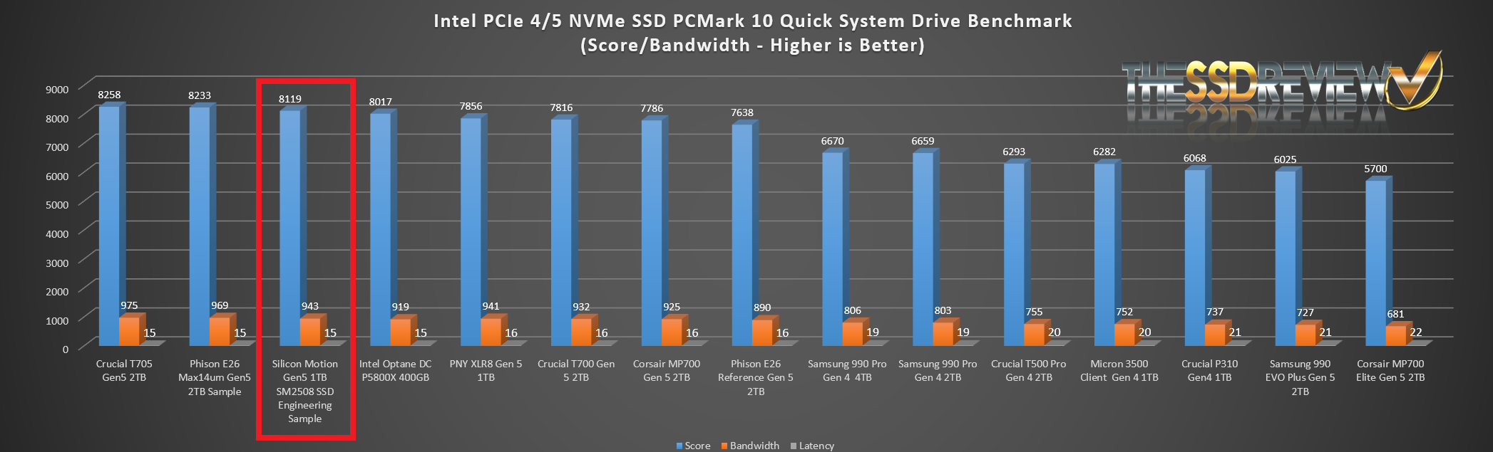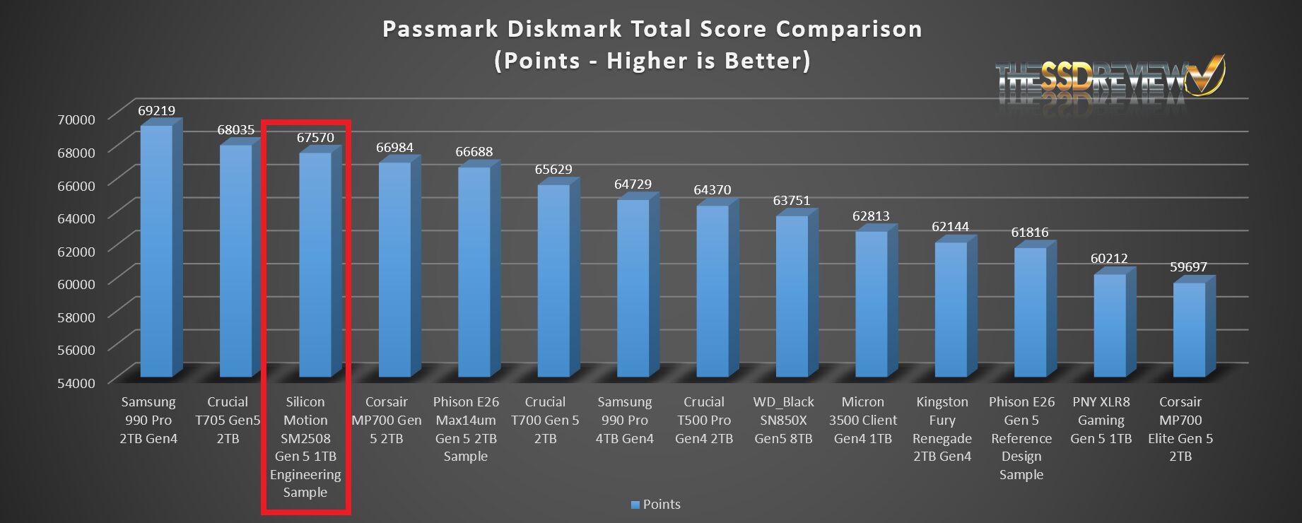 The Silicon Motion SM2508 Gen 5 reference sample placed fourth amongst the Top 5 of SSDs tested to date.