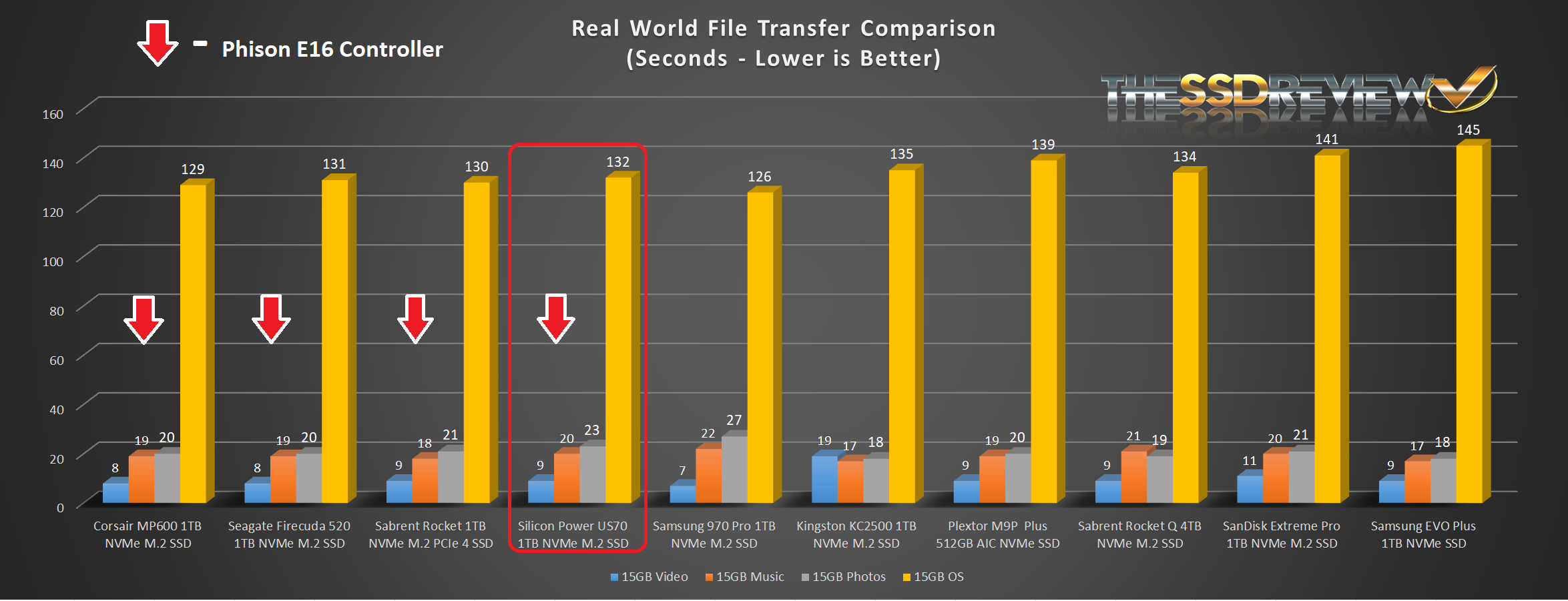 The key to this chart lies in the first four results, all being PCIe 4.0 NVMe SSDs, and all using the Phison E16 NVMe controller. Their results are virtually identical as they should be.