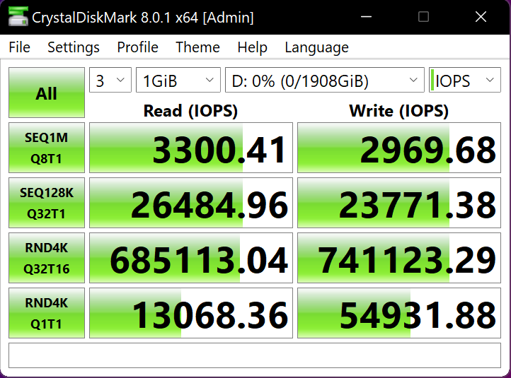 Crystal DiskMark results are decent when looking at sequential results, however, we found it a bit low with respect to low 4K read performance.