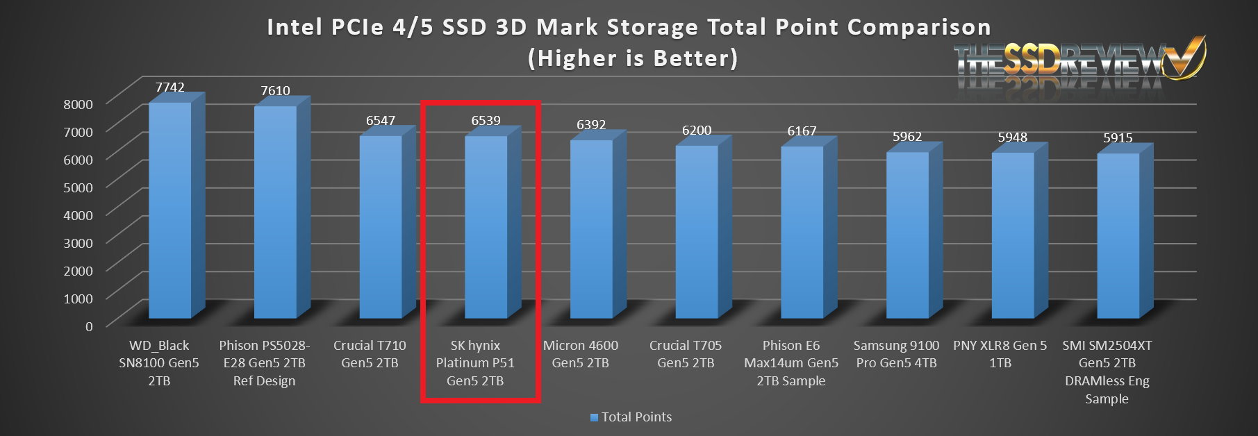 The Platinum P51 placed fourth of all SSDs tested to date on 3DMark Storage Benchmark.