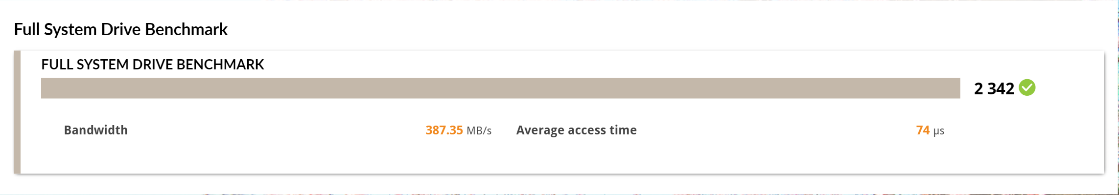 PCMark 10 Storage Benchmarks produce an overall score as a measure of drive performance. Comparing devices is as simple as comparing scores. The tests also measure and report the bandwidth and average access time performance for the drive. Each test uses traces recorded while performing real-world tasks such as booting Windows 10, starting applications such as Adobe Photoshop and Illustrator, working with applications such as Microsoft Excel and PowerPoint, and copying several large files and many small files.