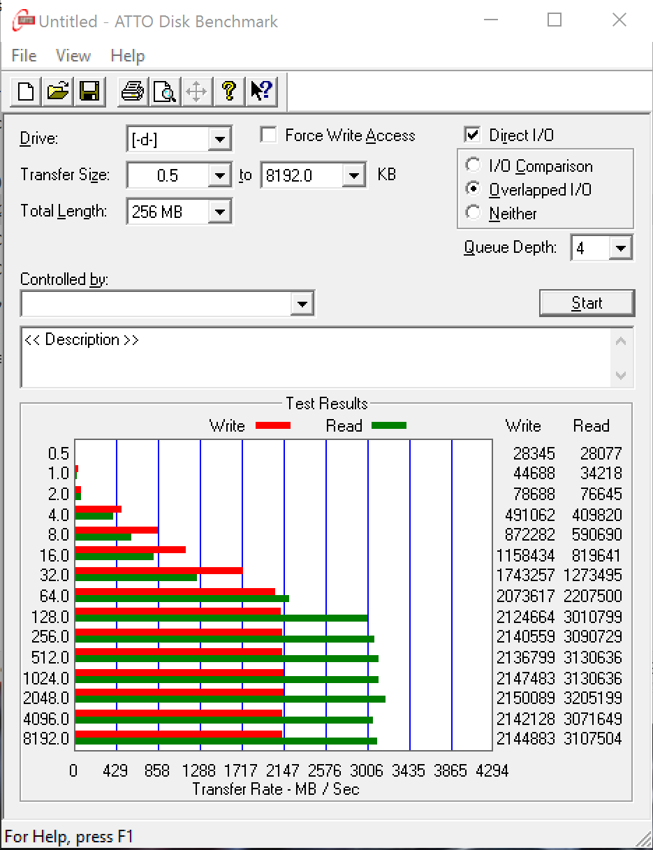 ATTO Disk Benchmark is perhaps one of the oldest benchmarks going and is definitely the main staple for manufacturer performance specifications. ATTO uses RAW or compressible data and, for our benchmarks, we use a set length of 256mb and test both the read and write performance of various transfer sizes ranging from 0.5 to 8192kb. Manufacturers prefer this method of testing as it deals with raw (compressible) data rather than random (includes incompressible data) which, although more realistic, results in lower performance results.