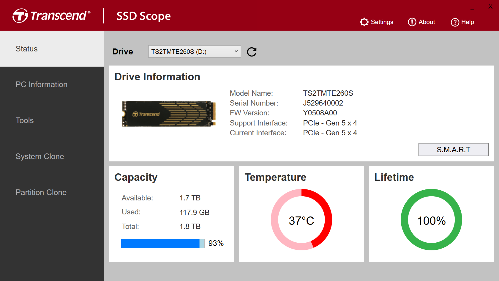 Transcend also has their SSD Scope software which is a free download here. There are a number of utilities on it to include View Drive Information, View S.M.A.R.T. Status, Diagnostic Scan, Secure Erase, Firmware Update, TRIM Enable, Health Indicator and System Clone.
