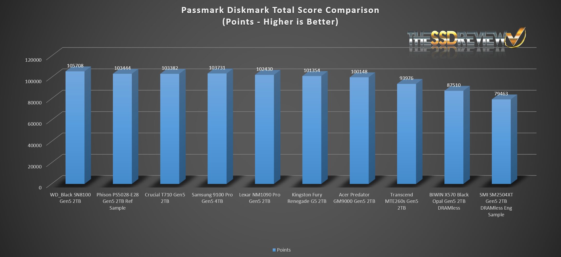 The Transcend MTE260S Gen5 SSD placed respectably in the Top 10 results of the PassMark DiskMark Performance benchmark.