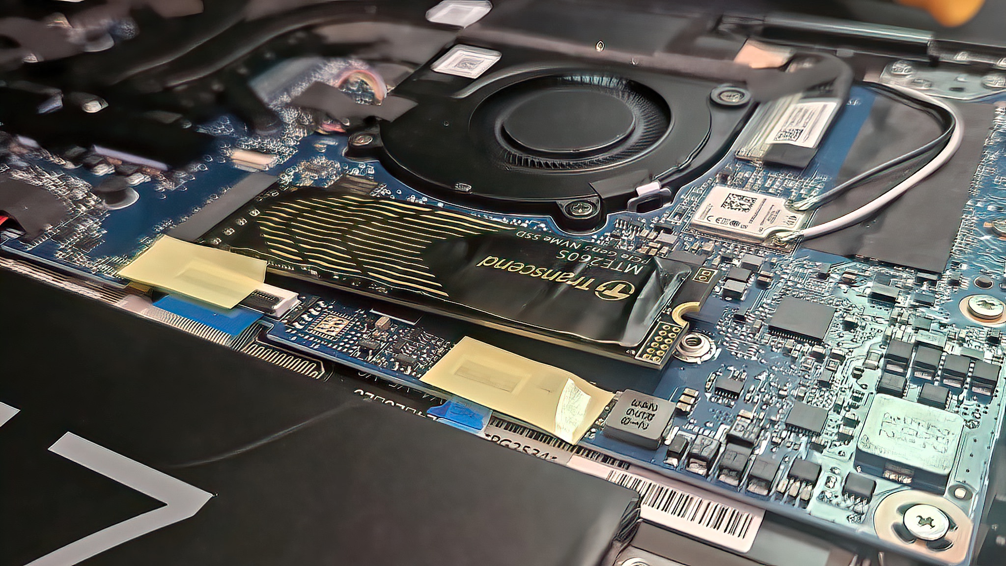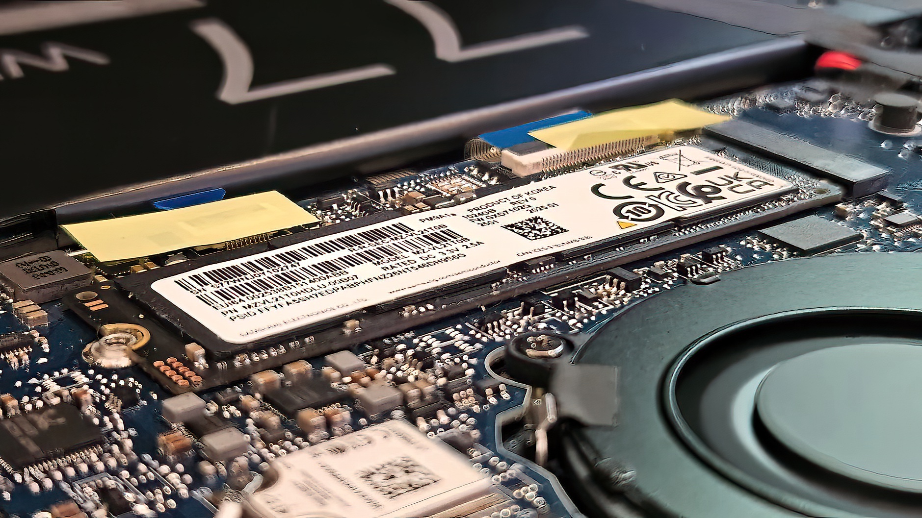 Any attempt whatsoever to push this SSD down and screw it in could damage the socket itself, and/or the MTE260S SSD. We would not recommend this SSD for this, or similar laptops where the SSD rests against the PCB itself. This is how the stock Samsung PM9A1a (980 Pro) Gen4 SSD Sits: