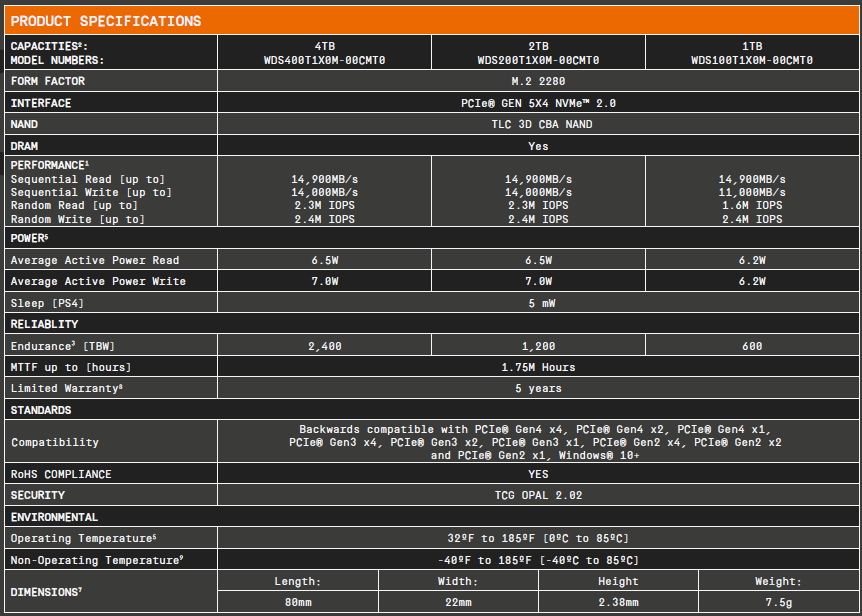 This is a single sided SSD with an average active read power rating of 6.5w and write up to 7w. This is rather important as it demonstrates that the SN8100 is a relatively cool SSD that could be considered for laptops.