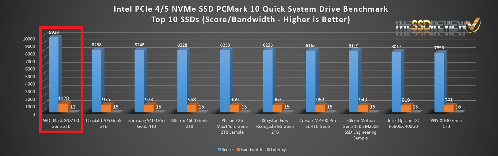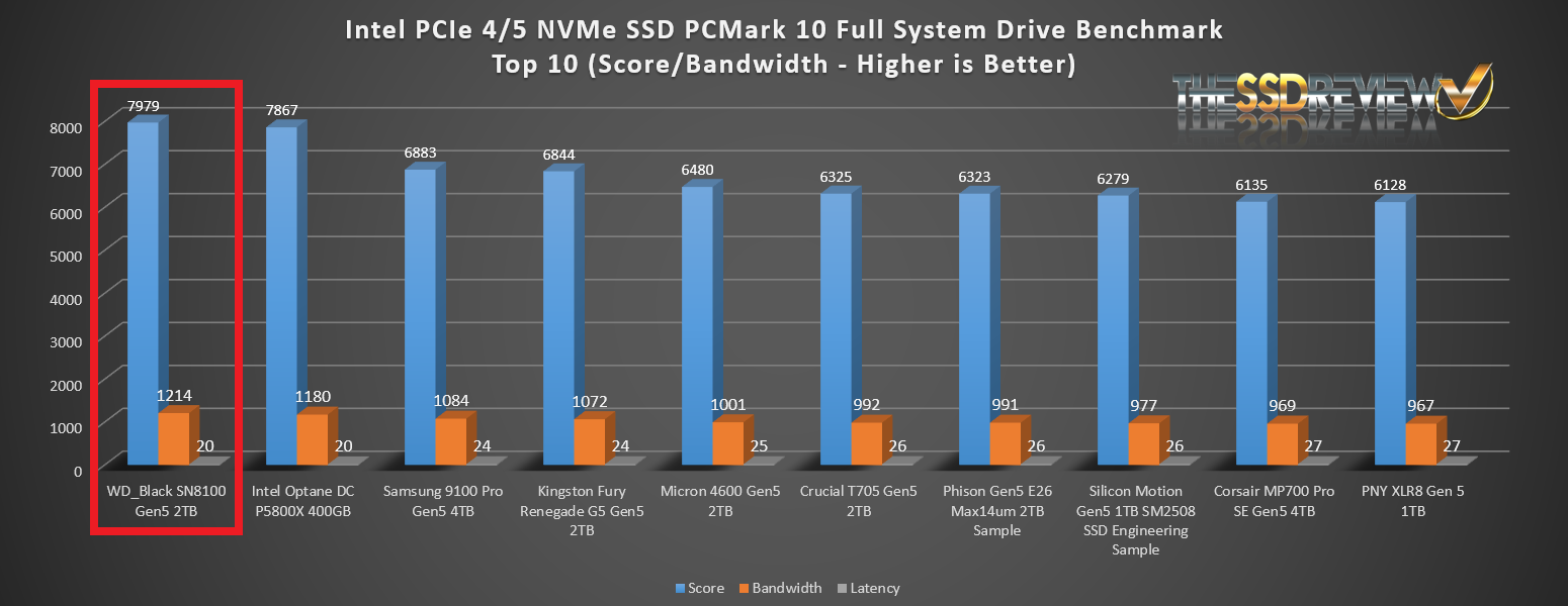 Again, the WD_Black SN8100 Gen5 SSD in our top SSD in this Bench (and every other we threw at it).