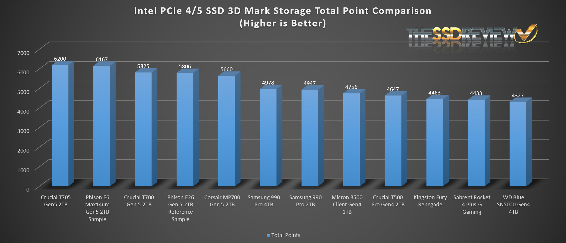 The WD Blue SN5000 once again placed 12th in all SSDs tested in 3DMark to date.