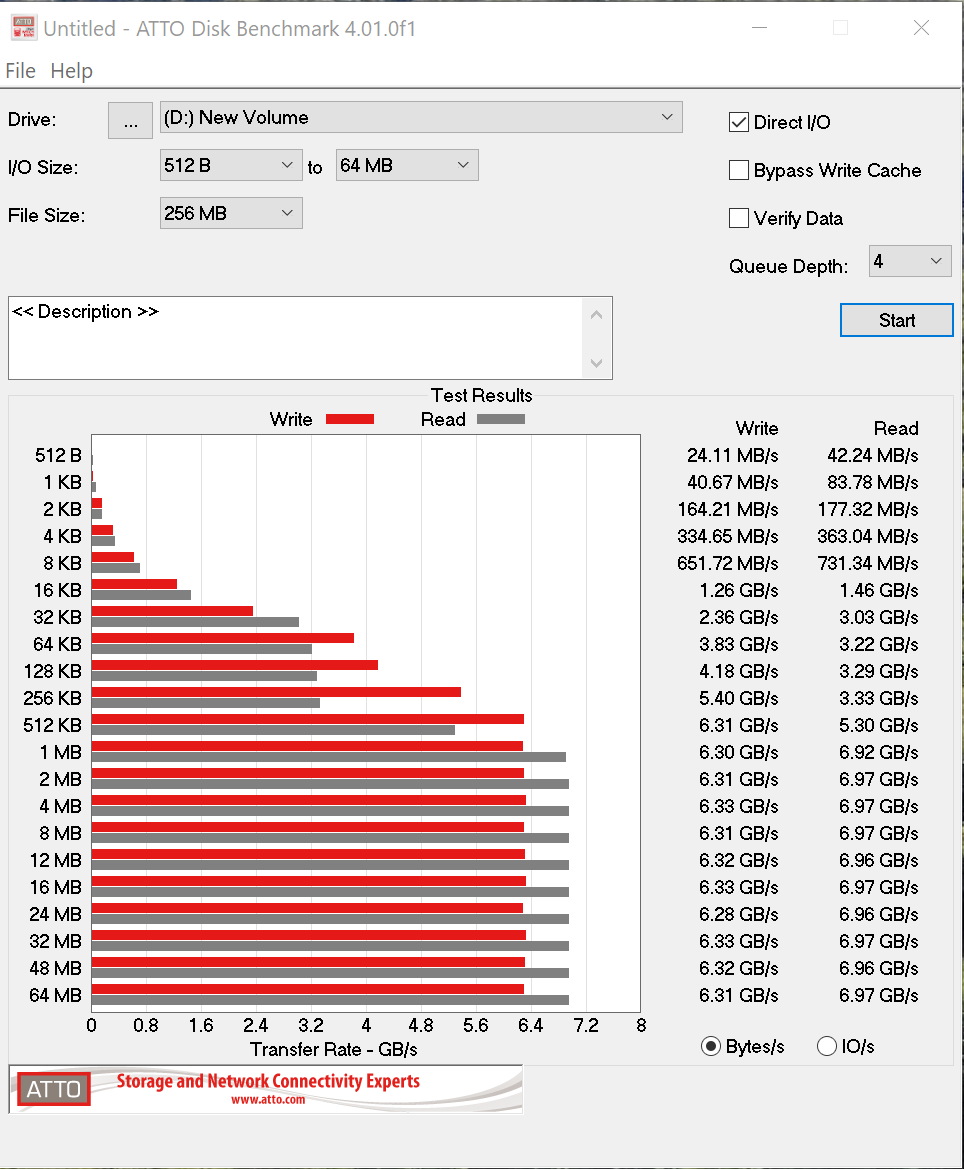 These are some of the strongest results we have seen from ATTO with highs of 6.97GB/s read and 6.33GB/s write.