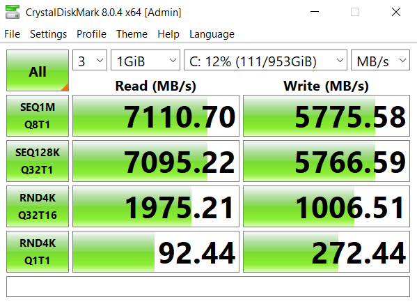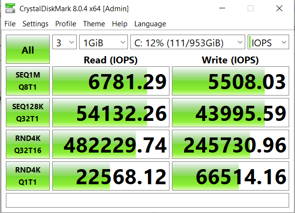 We have switched off the factory SSD for our XPG GAMMIX S70 Blade NVMe SSD with the newly supplied firmware and we did a fresh install with Win 11 upgrade. No optimizations whatsoever have been done to this system. The laptop is found here on Amazon. We should state right off that we really don’t expect performance in any laptop to equal that of our Test Bench testing simply because laptops and ultra books contain mobile processors which are built to accommodate a totally different environment. For example, we could all agree that performance might be a bit lower as mobile processors are built to be much cooler.