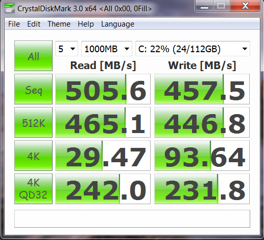 Enough cannot be said about the importance of the 4k random write score which is the single most important disk access method when considering your visible system upgrade from a hard drive. The result of 93MB/s here is an excellent result. For a better understanding of this, one of our most popular articles, The Manufacturers Bluff, is linked and discusses the importance of the 4kb random performance results in comparison to the coveted high sequential reads and writes which most look at in their SSD purchase. If you are going to purchase a SSD, this is the most valuable bit of reading you can find.