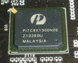 Below and to the right of this is also the Pericom PI7C9X130 PCIe/SATA Bridge Chip which allows communication to the PCIe bus itself and, as well, the Wurth Electronics power inductor (WE 7443552150) and 5124K x8CMOS Multi-Purpose Flash (MPF) manufactured with SST proprietary, high performance CMOS SuperFlash technology in the SST 39VF040 chip.