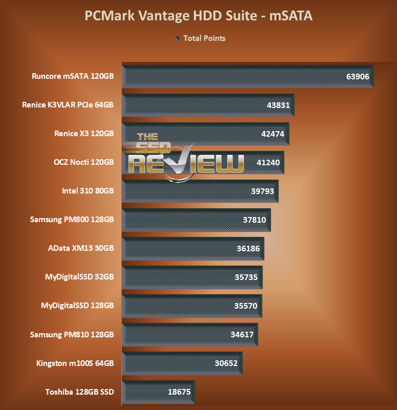 Our next chart is a hierarchy which has been determined solely based on PCMark Vantage HDD Suite Total Point scores: