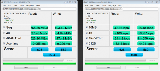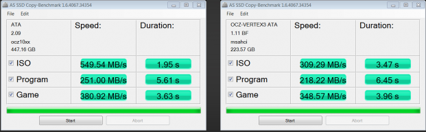 AS SSDs new Copy Benchmark is an excellent test of comparison as it simply tests the speeds reached in transfer of applications, ISO and gaming and provides the speed and time the transfer took in result. Lets compare the Revo 3X2 to our top ranking SSD, the OCZ Vertex 3, just to establish a SSD to PCIe comparison.