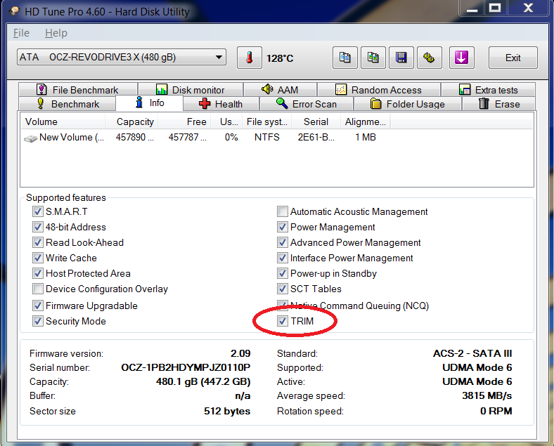 All standard checks, including software applications, show TRIM as being active. OCZ says the Revo 3×2 Card supports TRIM because the architecture is based on SCSI. The MS Windows Storport architecture, however, does not presently support TRIM or SCSI UNMAP. Conversations with OCZ regarding this revealed that OCZ and Microsoft are working together and the functionality should be enabled in the near future.
