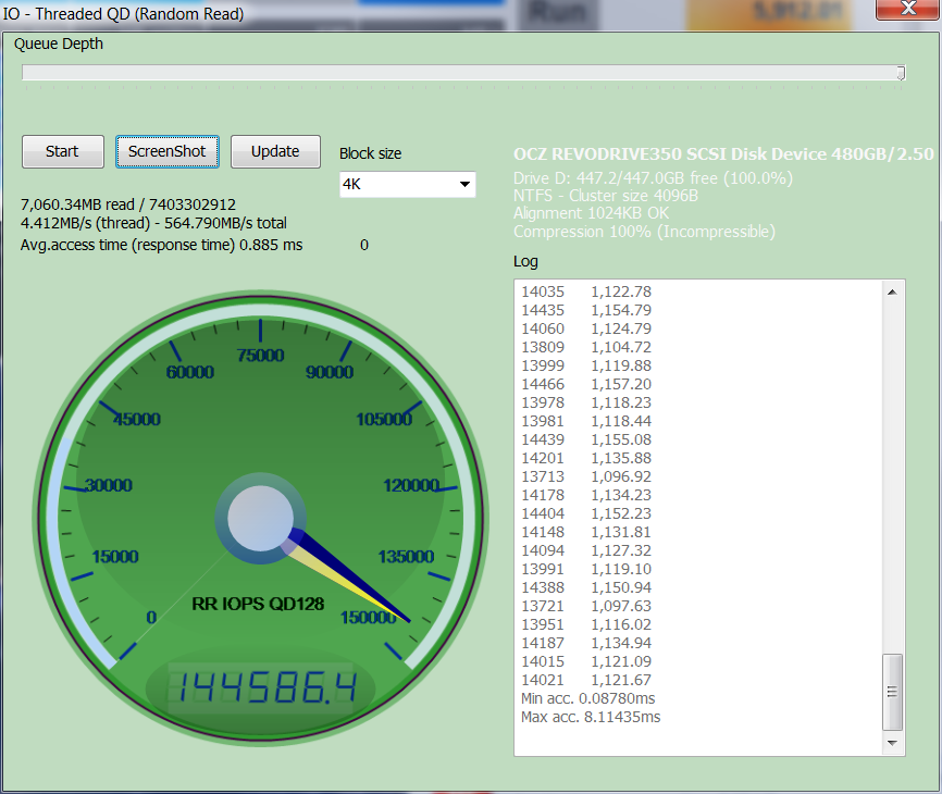 Once again, we see the results of testing with incompressible data. ASU is not the best example of just how high we can get our IOPS so we thought we might do a bit of a custom test in ASU: