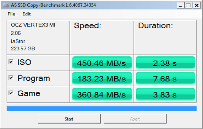 In comparing the two here, we can see that, although the Vertex 3 was a bit better in Program copying, the Max Iops did sinicantly better in ISO copying.