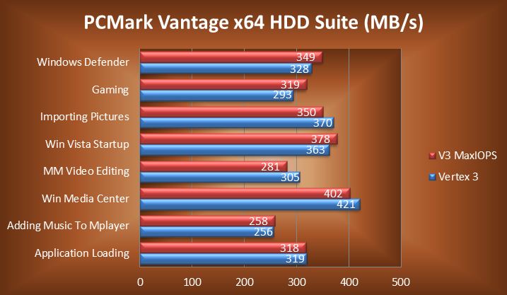 The big question we have is how the V3 Max IOPS will fare, head to head against the Vertex 3 for transfer speeds in the 8 Vantage tests: