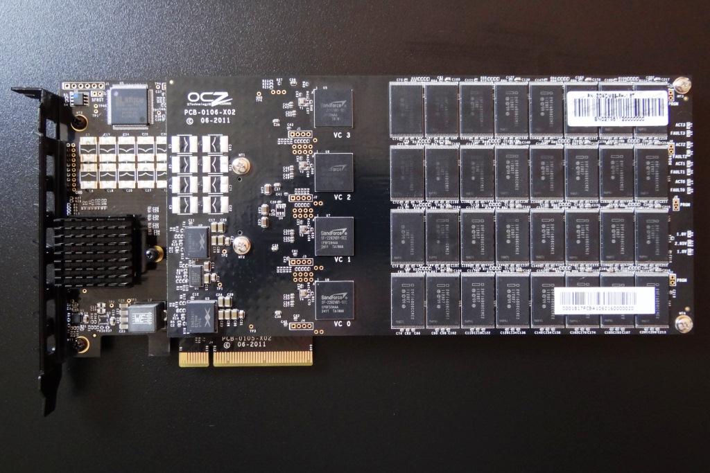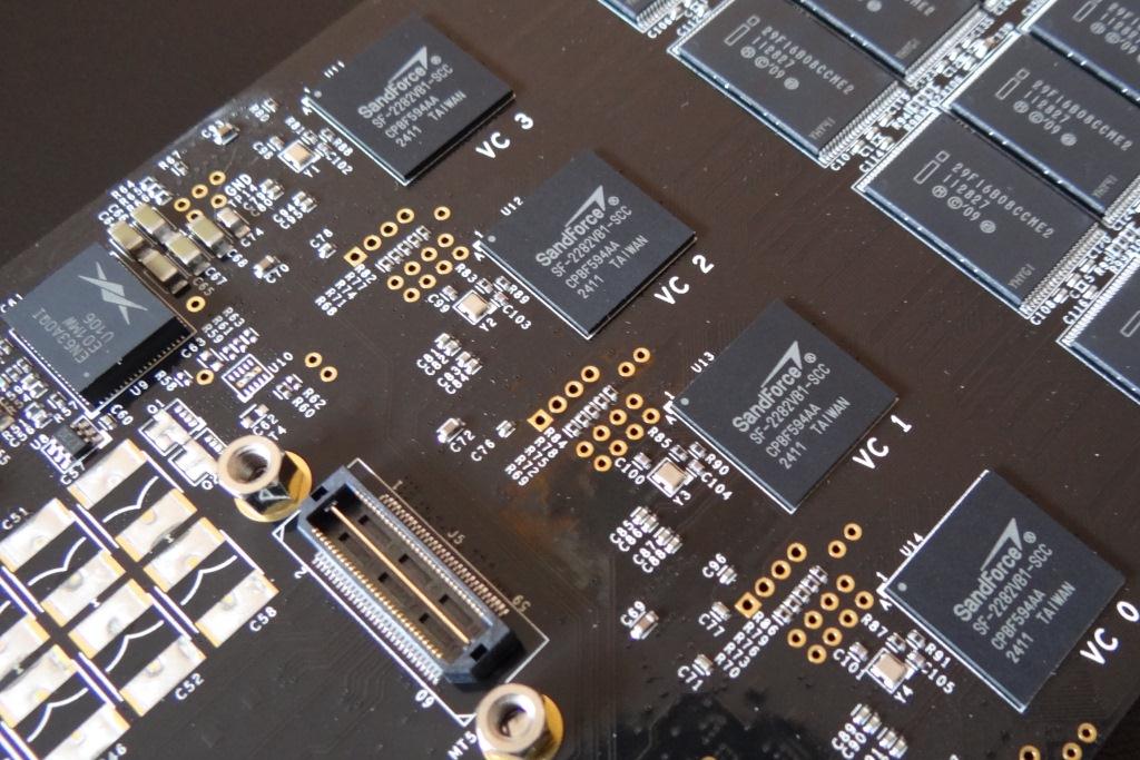 To break it down further, each SF-2281 processor controls 256GB of flash NAND memory which is provisioned to 200GB for the advertised total of 1.6TB. Thats a total of 448GB of over provisioning alone! Formatting takes its toll, as well, which leaves the end user with a total of 1.49TB of available storage.