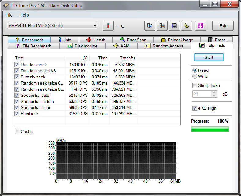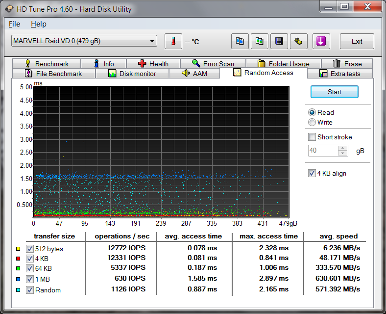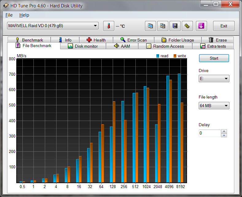 We don’t use HDTune Pro much anymore as, for the most part, it simply confirms what we have been seeing in other benchmarks… in most cases. In this scenario, we thought it was an excellent representation of performance where transfer speeds in excess of 600-700MB/s can be seen in the two bottom charts.