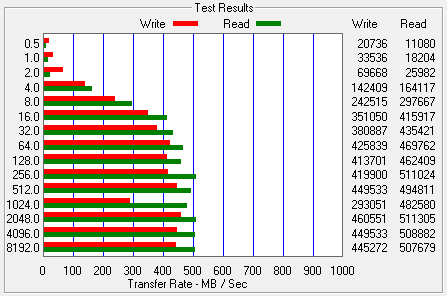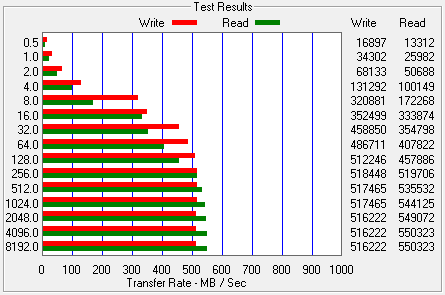 ATTO Disk Benchmark is perhaps one of the oldest benchmarks going and is definitely the main staple for manufacturer performance specifications. ATTO uses RAW or compressible data and, for our benchmarks, we use a set length of 256mb and test both the read and write performance of various transfer sizes ranging from 0.5 to 8192kb. Manufacturers prefer this method of testing as it deals with raw (compressible) data rather than random (includes incompressible data) which, although more realistic, results in lower performance results.