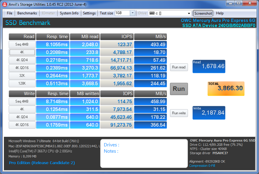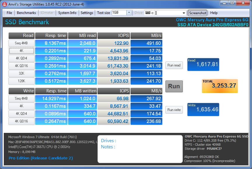 Something that surprised us even more was the results while testing in compressible data with the Aura Pro as seen below. The high of 91,273 IOPS at 4k-QD16 write is the single highest score achieved by typical SSD to date.