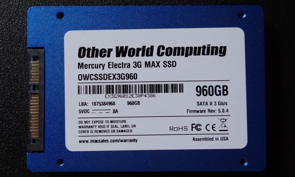 The OWC Mercury Electra Max 960GB SSD is (as far as we know) the first consumer SSD to be publicly available in it’s capacity and it is accompanied by a premium price of $1117.99. Let’s not fool ourselves. It is the only of its kind, it is a niche product and it does answer the call of a specific SSD shortfall; high capacity. It is a SATA 2 SSD with performance specifications of 254MB/s read and 250MB/s write and this SSD has a standard three year OWC warranty, as well as a 30 day return policy.