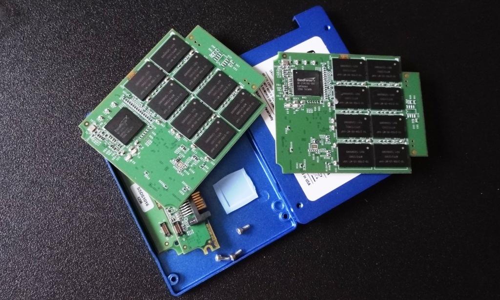 The inside of this SSD is what makes it so special. It is comprised of two identical PCBs, each with a LSI SandForce SF-2181 SATA 2 controller and each containing 16 pieces of Micron 25nm MLC asynchronous 32GB NAND flash memory. Click on the picture for a higher resolution.