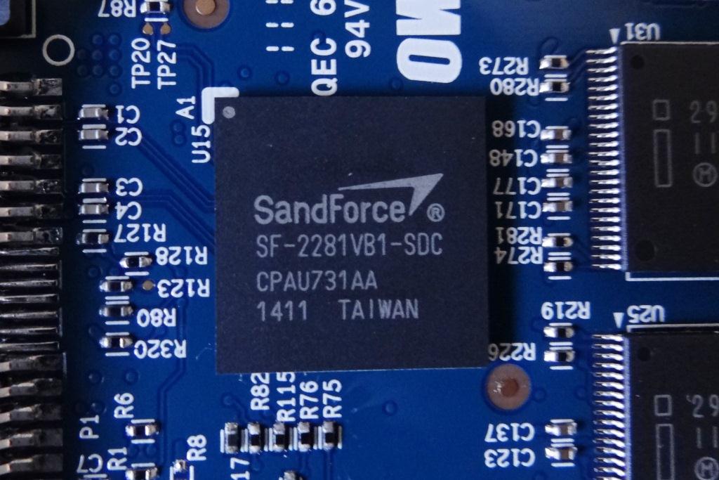 The main components of the drive consist of the SATA 3 interface for connecting to a computer, SandForce SF-2281 6Gbps processor and 16 chips of Intel 25nm asynchronous memory.