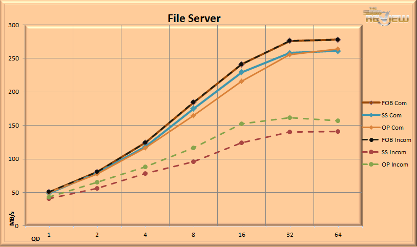 The File Server profile emulates usage in a file server environment with a vast range of file sizes being accessed simultaneously. This type of file access is 80% read and 20% write. The performance does vary from Steady State and Overprovisioned, showing that with the proper tuning these drives can be optimized for their environment.