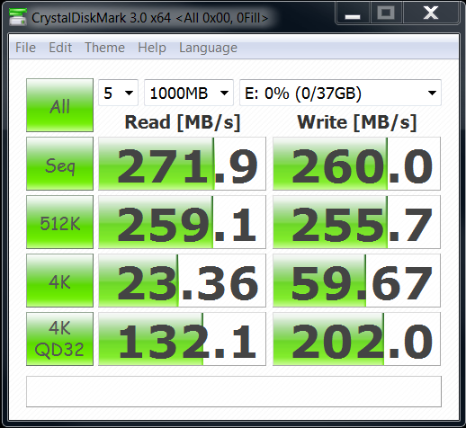 Crystal DiskMark and ATTO represent the two primary test methods utilized by manufacturers to arrive at their listed specifications. Both confirm that this drive can reach the top of the SATA 2 bandwidth limit and the Crystal DiskMark score displays that that all important low 4kb write access speed to which 60MB/s is an excellent result.