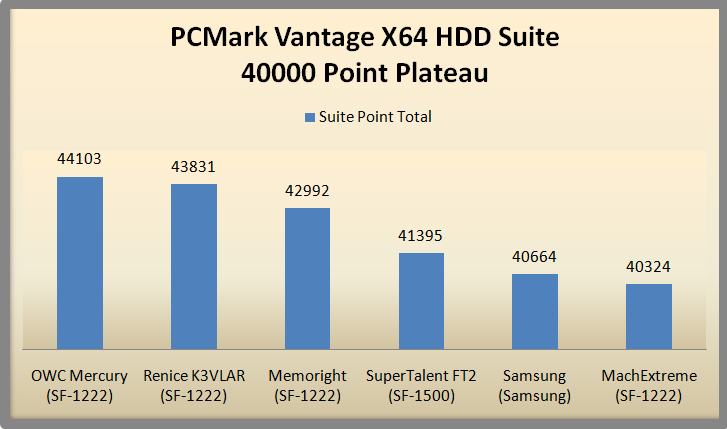 We thought it appropriate that we also create a chart which displayed all of the solid state drives that have surpassed the PCMark Vantage HDD Suite 40000 point plateau. We see a definite pattern.