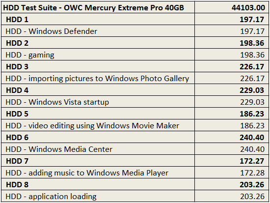 SCORE TO RIGHT OF SPECIFIC HDD TEST PORTRAYED IN MB/S