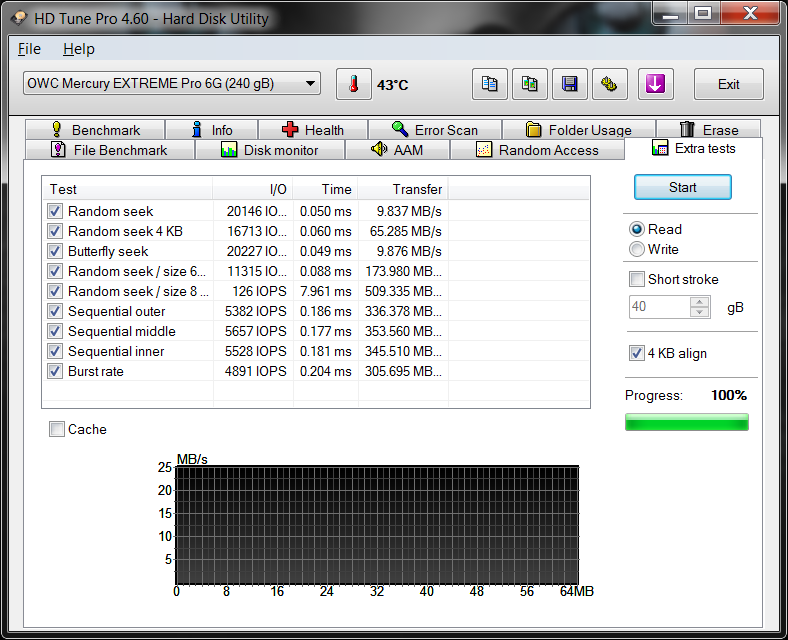 HDTune Pro is a great software program that lets us have a look at all aspects of testing through several separate tests: