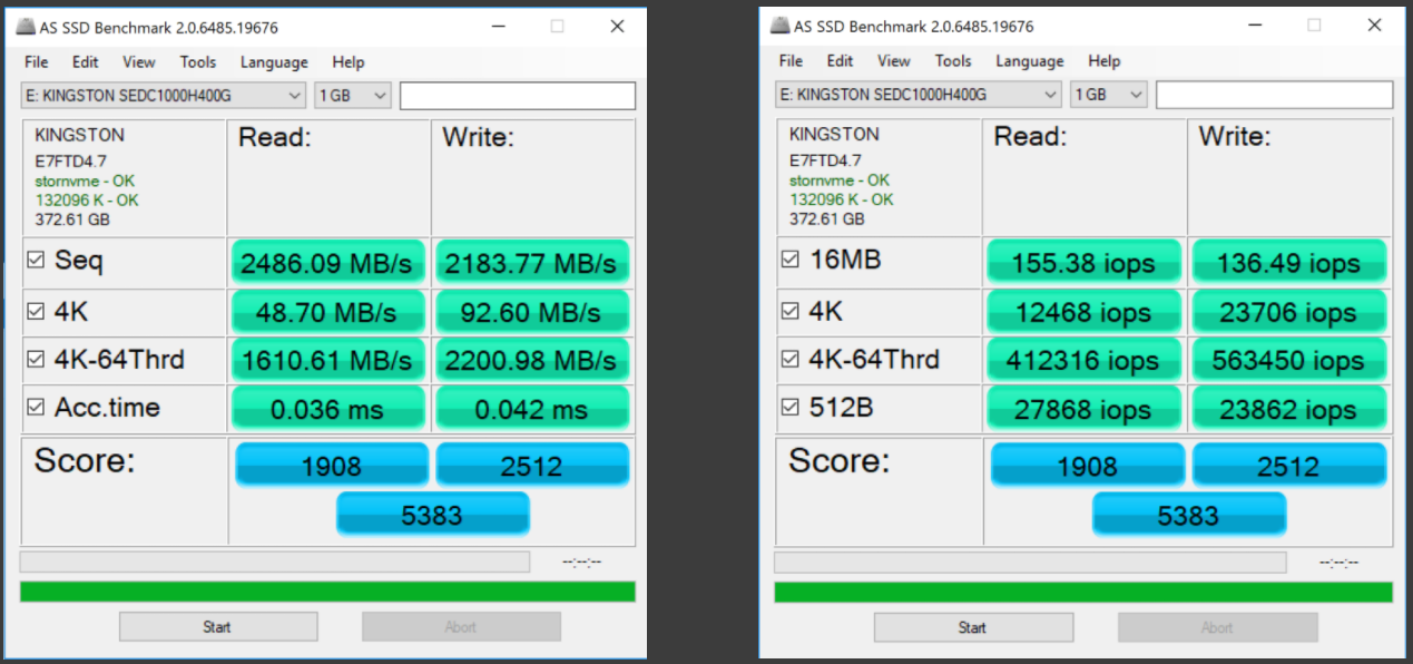 In examining the AS SSD results, IOPS is very much the strongpoint with 412K IOPS read and 563K IOPS write, although that ISO transfer speed of 2.2GB/s can’t be missed.