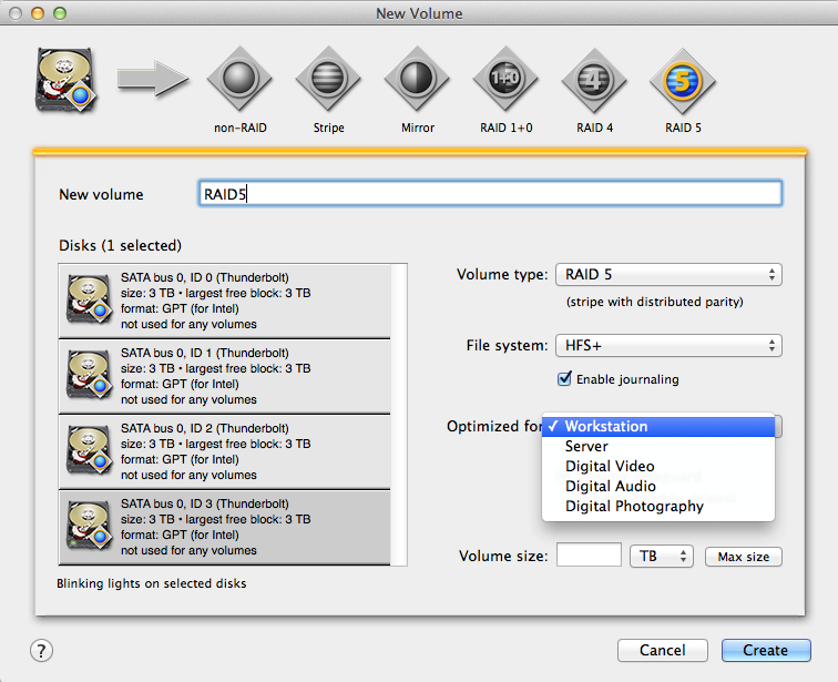 As shown in this screenshot, RAID 5 can be optimized for several different RAID environments. Now let’s take a look at the tests…