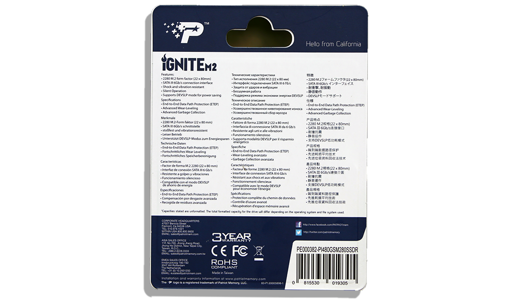 The Patriot Ignite M.2 SSD is a SATA 3 (6GBps) M.2 SSD, available in capacities of 240 and 480GB, has end-to-end data protection, is TRIM compliant and has a three-year warranty. The Ignite is of a 2280 (80mm) M.2 form factor which means it is 80mm in length; other M.2 form factors including 30, 42, and 110mm. Performance for the Ignite M.2 SSD is listed as 560MB/s read and 320MB/s write with up to 90K IOPS at low 4k random write disk access. One might notice that the write performance is a bit low, a factor attributed to the memory which just so happens to be asynchronous.