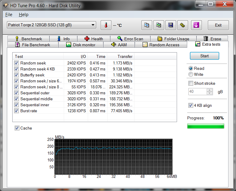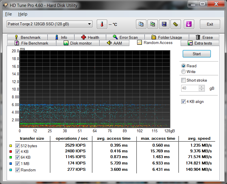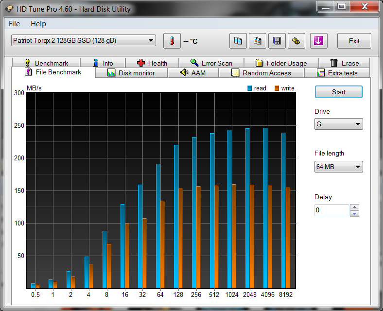 HDTune Pro confirms much of what we have been seeing in our other tests which is that the Patriot Torqx is being brought to market as a mid-range SSD and the pricing seems to confirm such.