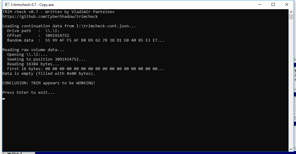As can be seen in the screenshot above, TRIMcheck’s result is positive. TRIM is indeed working.