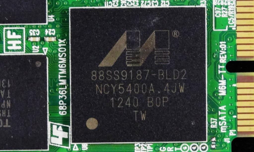 The Marvell SS9187-BLD2 controller is a 6Gbps eight channel controller, capable of up to 200MB/s transfer speed per channel. It is termed as a ‘Monet’ controller and has a dual core architecture.