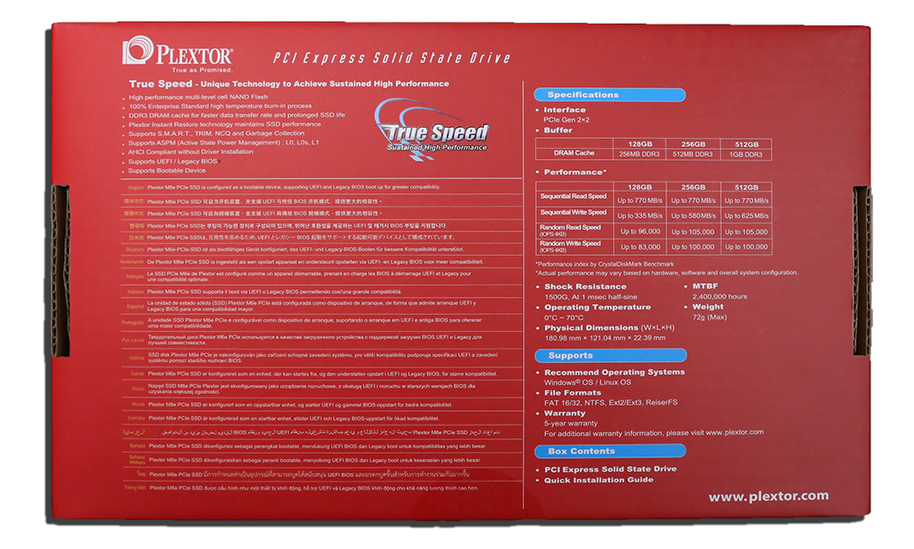 The Plextor M6e PCIe M.2 SSD is a PCIe X2 device and, as much as that doubles the performance compared to SATA 3 SSDs, using only 2 lanes also means that the M6e is bottle-necked at 1GB/s speeds. The M6e will be available in sizes of 128, 256 and 512GB and performance is variable depending on capacity.