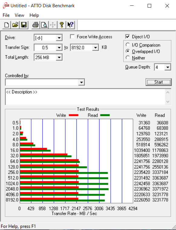 ATTO Disk Benchmark is perhaps one of the oldest benchmarks going and is definitely the main staple for manufacturer performance specifications. ATTO uses RAW or compressible data and, for our benchmarks, we use a set length of 256mb and test both the read and write performance of various transfer sizes ranging from 0.5 to 8192kb. Manufacturers prefer this method of testing as it deals with raw (compressible) data rather than random (includes incompressible data) which, although more realistic, results in lower performance results.