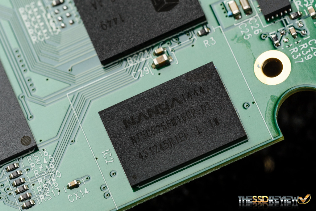 By using the Micron FBGA Decoder, we can identify the NAND flash as having the product number MT29F256G08CEECBH6-12:C, their L95B 16nm MLC NAND flash memory with each module being 32GB in capacity. Although the total RAW capacity of this SSD is 480GB, the usable storage space is 447GB once formatted. Next up, we get a look at the NANYA DDR3 DRAM cache.