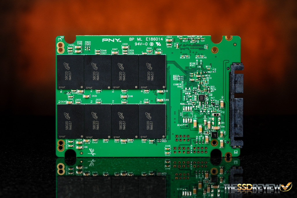 The controller is the popular SM2246EN which provides decent performance and we can also see that PNY has chosen Micron NAND as their staple of choice.