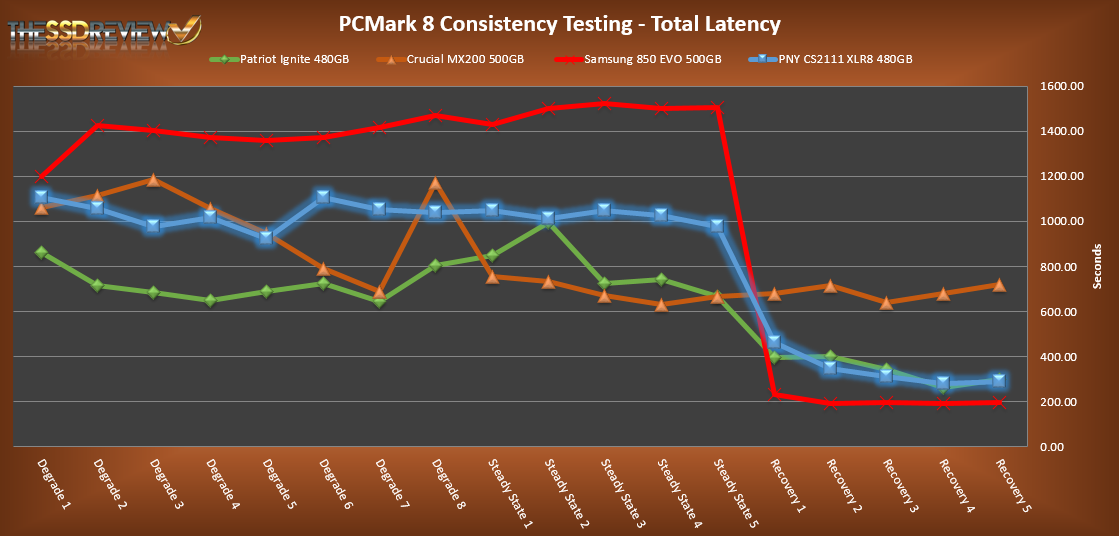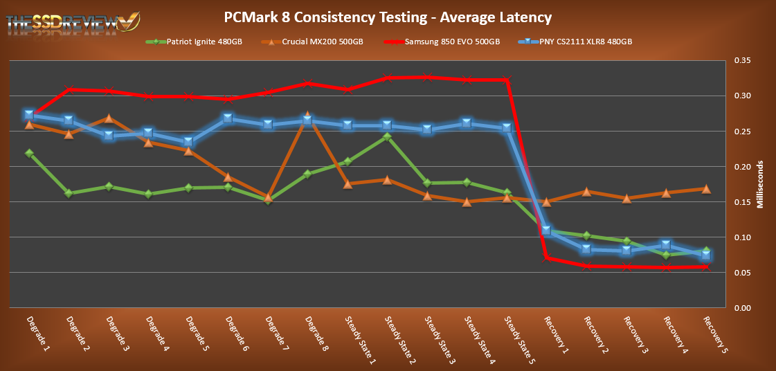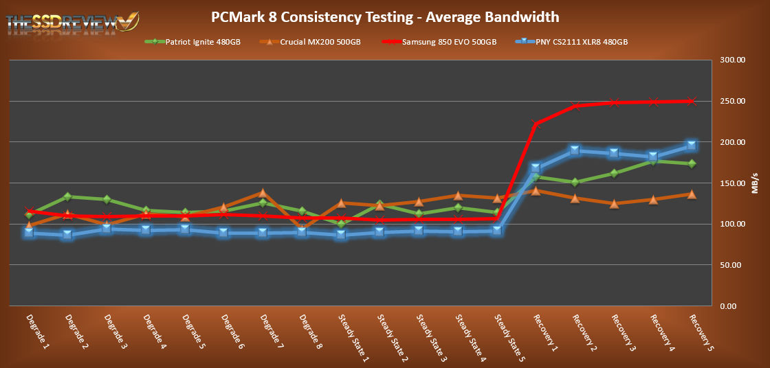 In reading the results, the Degrade and Steady State phases represent heavy workload testing while the recovery phase represents typical consumer light workload testing.
