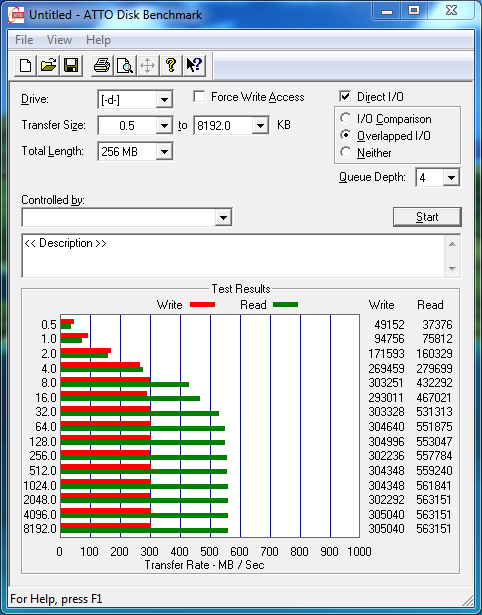 ATTO Disk Benchmark is a relatively easy-to-use benchmark tool, which happens to be the benchmark of choice for many manufacturers. ATTO uses compressible data rather than random data, which results in higher performance and thus, higher benchmark scores. In our testing, we have selected the transfer size to range from 0.5KB to 8192KB, and have set the total length of the test to be 256MB.