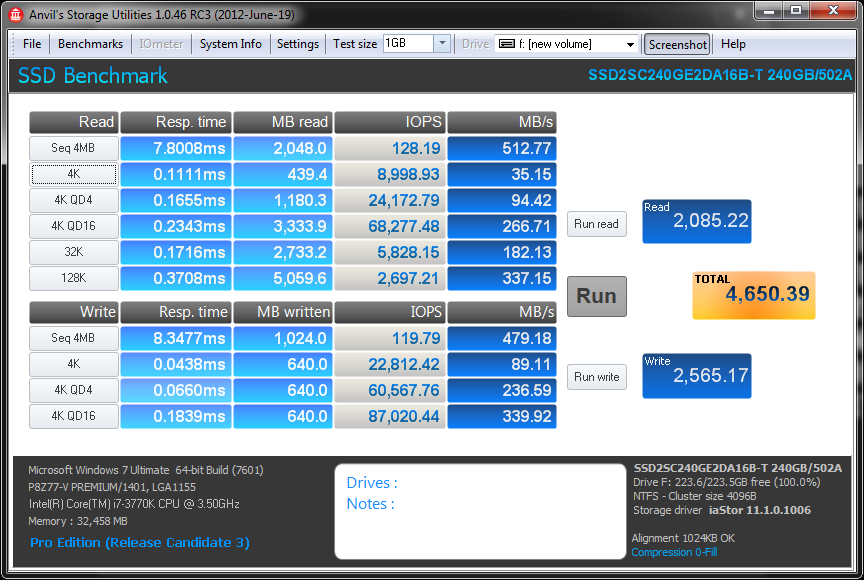 You may not see this for long (and its definitely not common) but you get a freebee simply for reading! Over the last little while, we have been assisting with beta testing new benchmark software called Anvil Storage Utilities which is an absolutely amazing SSD benchmarking utility. Not only does it have a preset SSD benchmark, but also, it has included such things as endurance testing and threaded I/O read, write and mixed tests, all of which are very simple to understand and utilize in our benchmark testing.