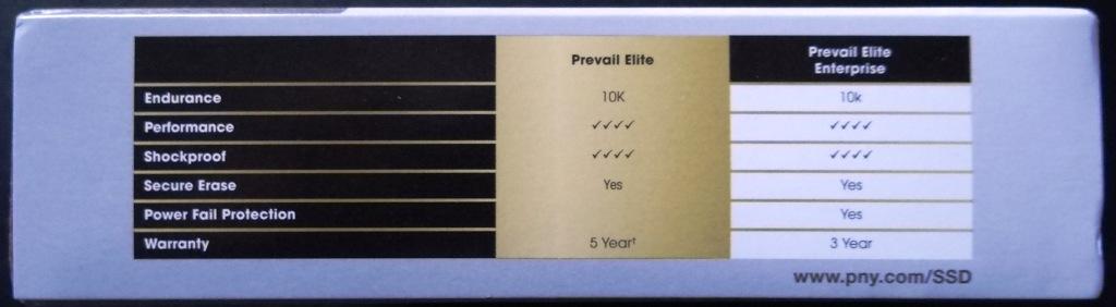 The PNY Prevail Elite contains Intel’s finest eMLC NAND flash memory and, unlike any other manufacturer in the industry, PNY will guarantee that it’s write cycle will last at least 10,000 writes which is two to three times than any other consumer SSD to date. They even put a big flash on the case face to highlight the point. Now if thats not enough, take a look at the side of the package, as well.