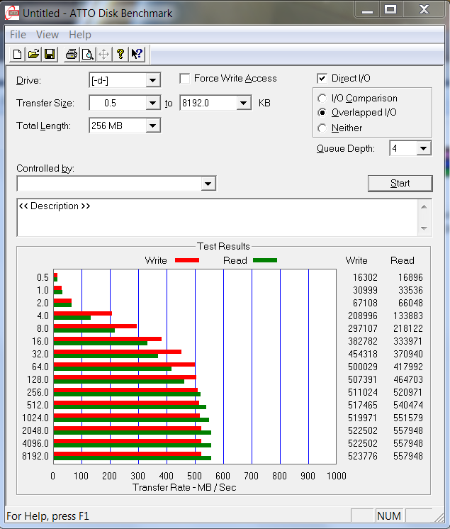 After checking the initial ATTO results we decided to take another look at listed specifications and found them to differ. The exterior of the package lists 540MB/s read and 500MB/s write while the website states 560MB/s read and 525MB/s write. The latter is more accurate and almost dead on with our results; great start!