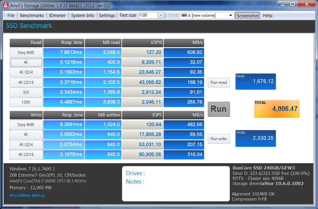 Over the last little while, we have been assisting with beta testing new benchmark software called Anvil Storage Utilities which is an absolutely amazing SSD benchmarking utility. Not only does it have a preset SSD benchmark, but also, it has included such things as endurance testing and threaded I/O read, write and mixed tests, all of which are very simple to understand and utilize in our benchmark testing.